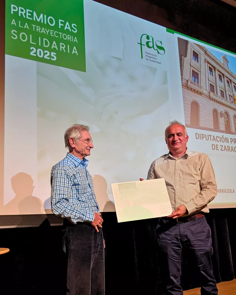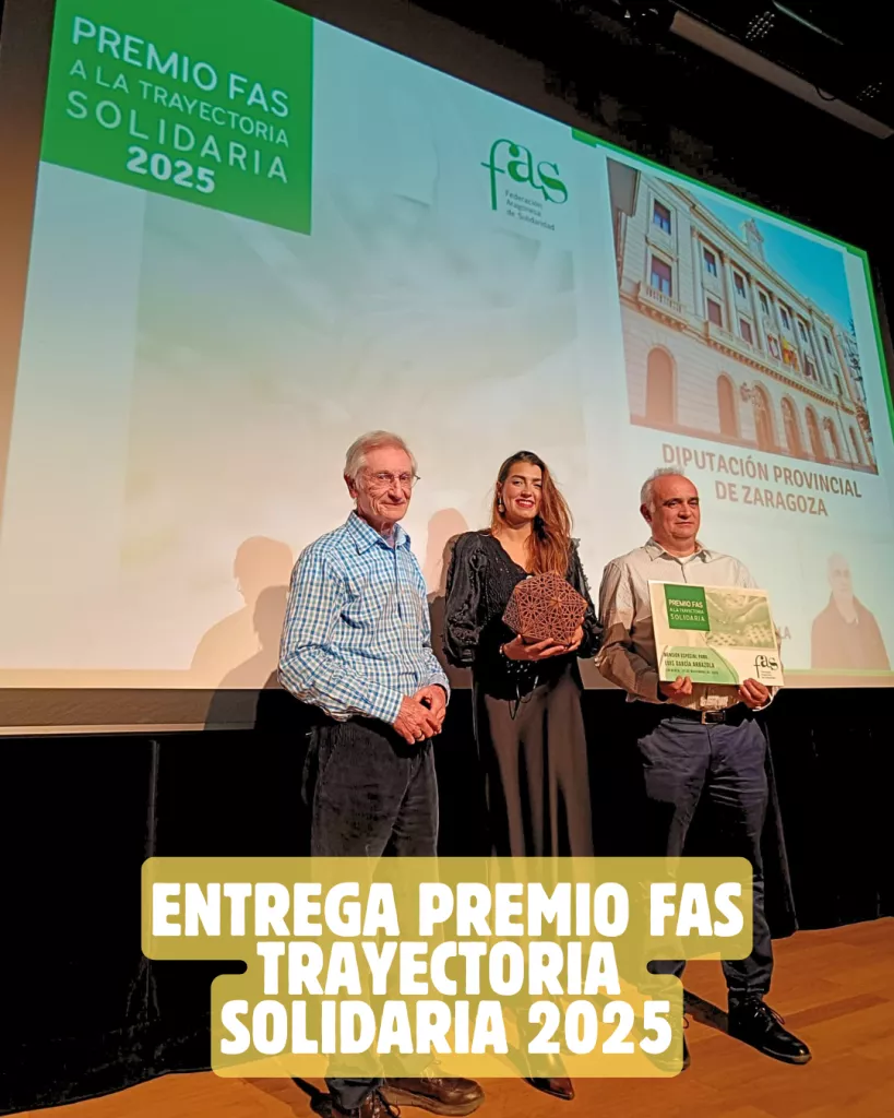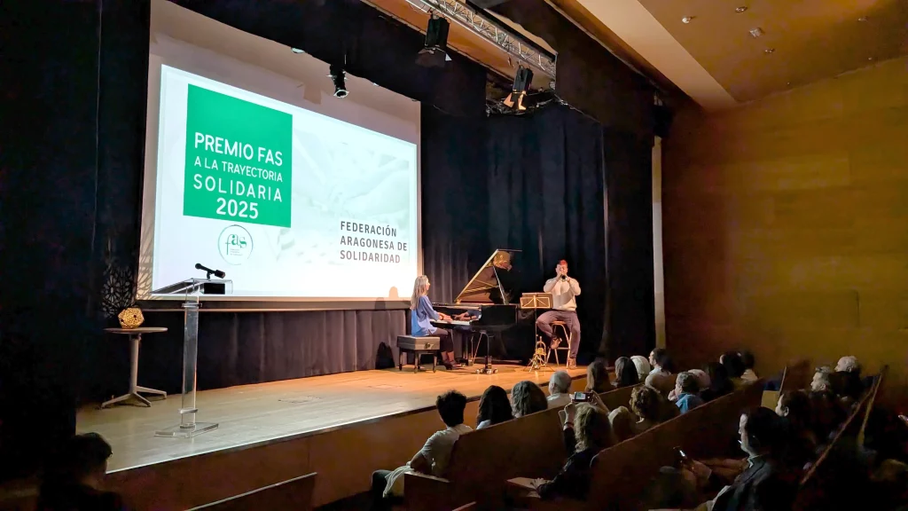 La tarde del 27 de noviembre vivimos uno de esos momentos que refuerzan el sentido profundo de la solidaridad en Aragón. El Centro Joaquín Roncal se llenó de compañeras, compañeros, representantes institucionales y ciudadanía comprometida para celebrar la entrega del Premio FAS a la Trayectoria Solidaria 2025, un reconocimiento a la dedicación constante y transformadora de quienes trabajan por un mundo más justo.