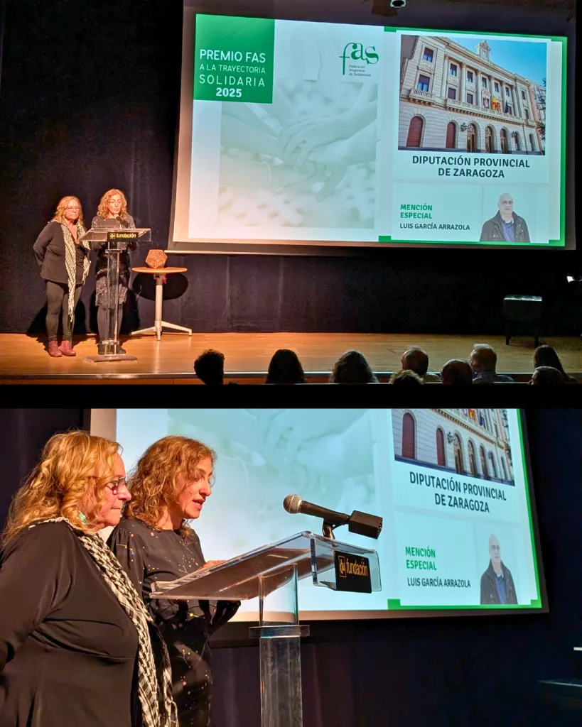 La Fundación Caja Inmaculada (CAI), entidad anfitriona y ganadora del premio en el año anterior, fue la encargada de entregar el galardón a la Diputación Provincial de Zaragoza. La ovación de la sala reflejó el reconocimiento compartido hacia su trayectoria. El presidente de la FAS, Ricardo Álvarez, hizo entrega de la mención especial para Luis García Arrazola.