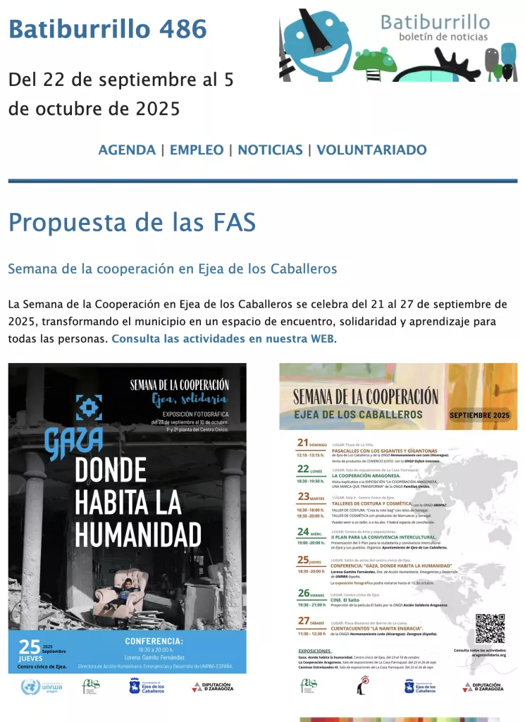 Conoce la agenda de actividades de la Federación Aragonesa de Solidaridad, sus ONGD y otras entidades a través de nuestro Boletín Informativo, BATIBURRILLO.