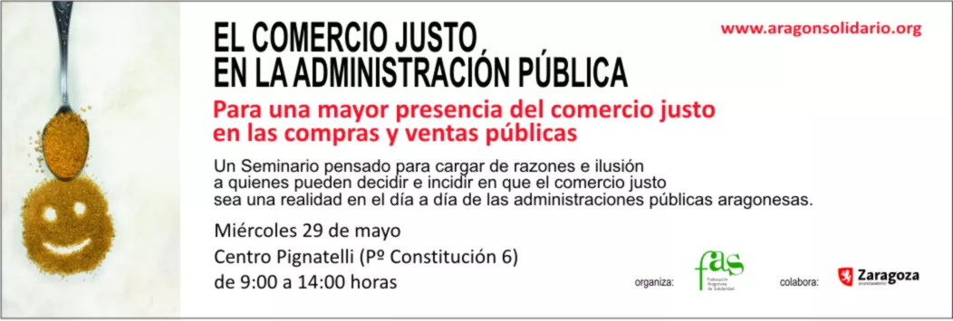 La Federación Aragonesa de Solidaridad (FAS), en colaboración con el Ayuntamiento de Zaragoza, ha organizado hoy miércoles 29 de mayo un Seminario sobre Comercio Justo en la Administración. El porqué del Seminario... El Comercio...
