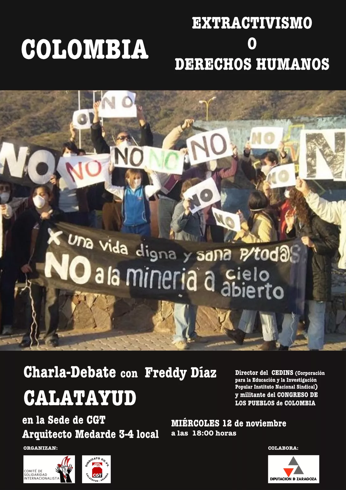 El Comité Internacionalista organiza tres charlas-debate con Freddy Díaz, director del CEDINS (Corporación para la Educación y la Investigación Popular Instituto Nacional Sindical) y militante del Congreso de los Pueblos de Colombia, nos acercan a la realidad del país y a la defensa de la vida frente al modelo extractivista.