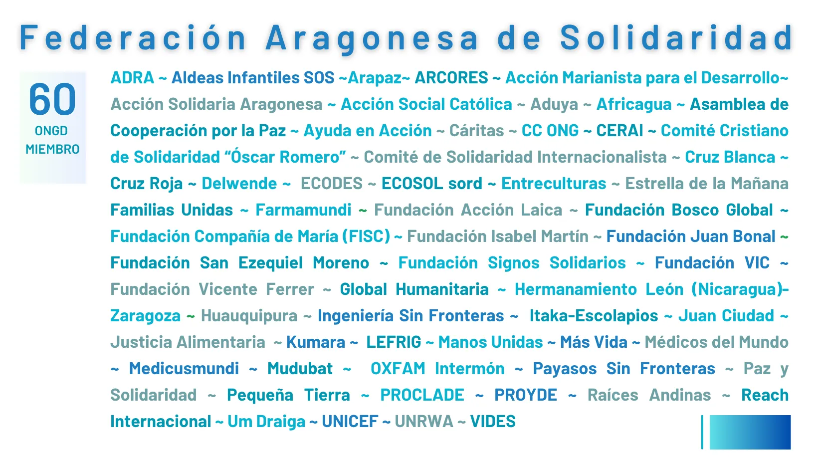 Conoce todas las entidades miembro de la Federación Aragonesa de Solidaridad en nuestro directorio de ONGD.